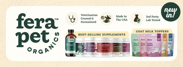 Fera Pet Organics Pet Supplements are formulated with an effective, optimal dosage of unique active ingredients designed to prevent and alleviate existing symptoms of common issues found in our cats and dogs.