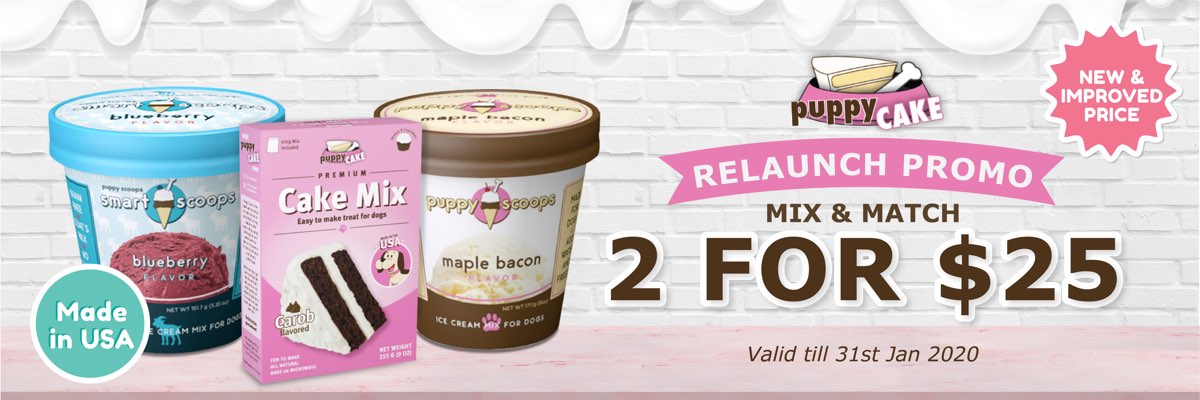 Puppy Cake and Puppy Scoops were made to provide dog owners and their dogs with a healthy yet tasty and fun treat!