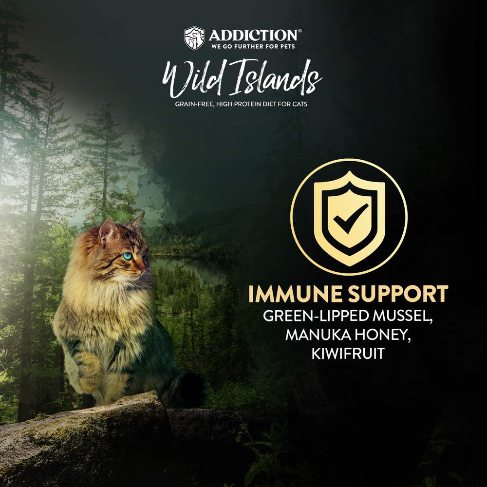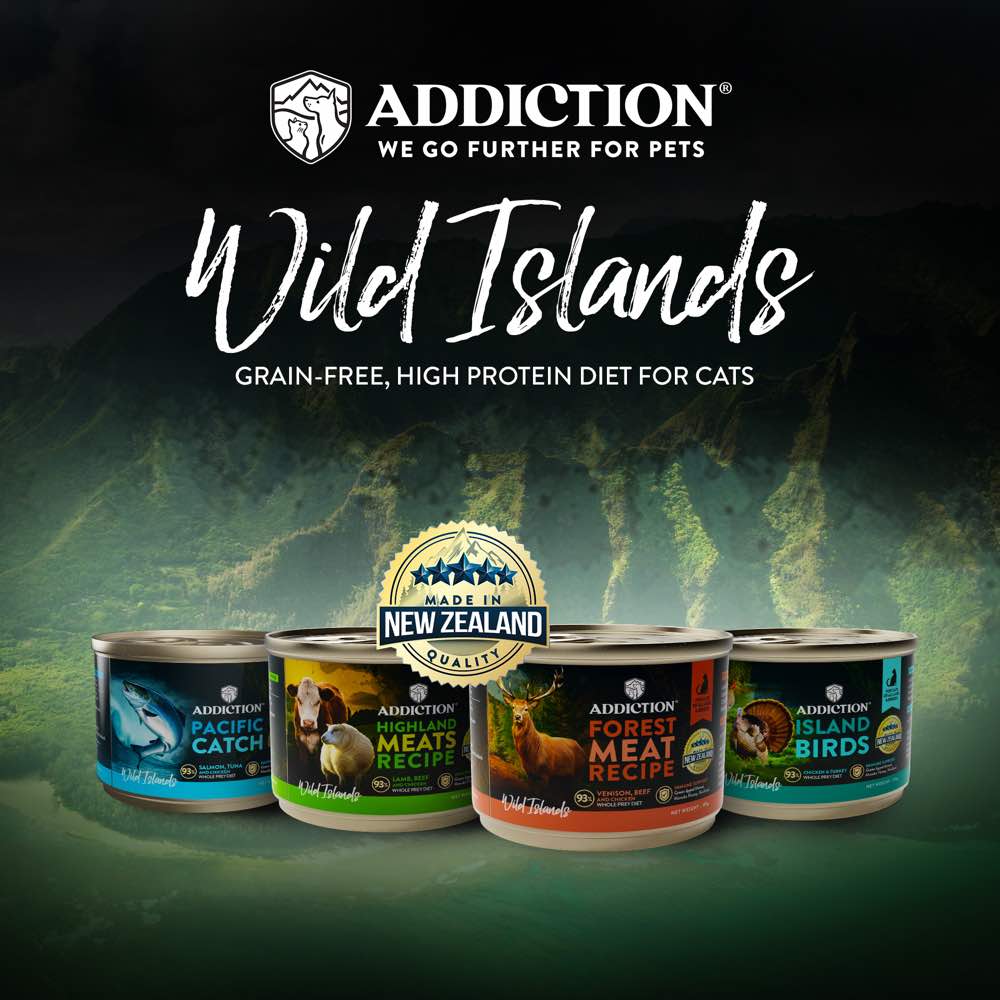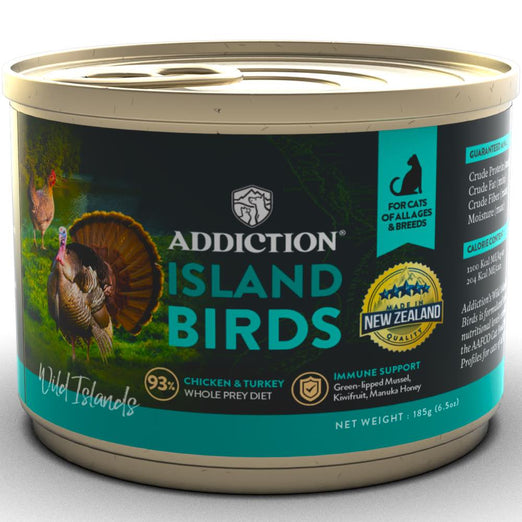 Addiction Wild Islands Island Chicken & Turkey Grain-Free Canned Cat Food is features premium New Zealand Chicken and Turkey which are highly flavourful and digestible.