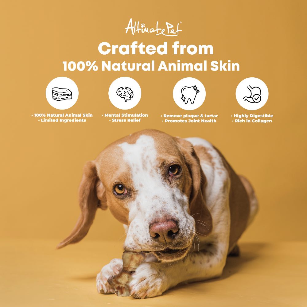 Altimate Pet Peanut Butter Knotted Bone Collagen Dog Chews are crafted from premium cow skin and are designed to provide a long-lasting chewing experience that your dog will thoroughly enjoy. The natural composition of collagen ensures that these chews are not only durable but also easily digestible, making them a much gentler option on your dog's stomach compared to traditional rawhide. The flexibility of collagen sticks also adds to the safety, reducing the risk of choking or intestinal blockages, which are common concerns with rawhide.