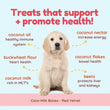 CocoTherapy Coco-Milk Bones coconut biscuits are vegan, grain and gluten free, dairy free, no eggs, and made with no preservatives, colors, or artificial flavors.