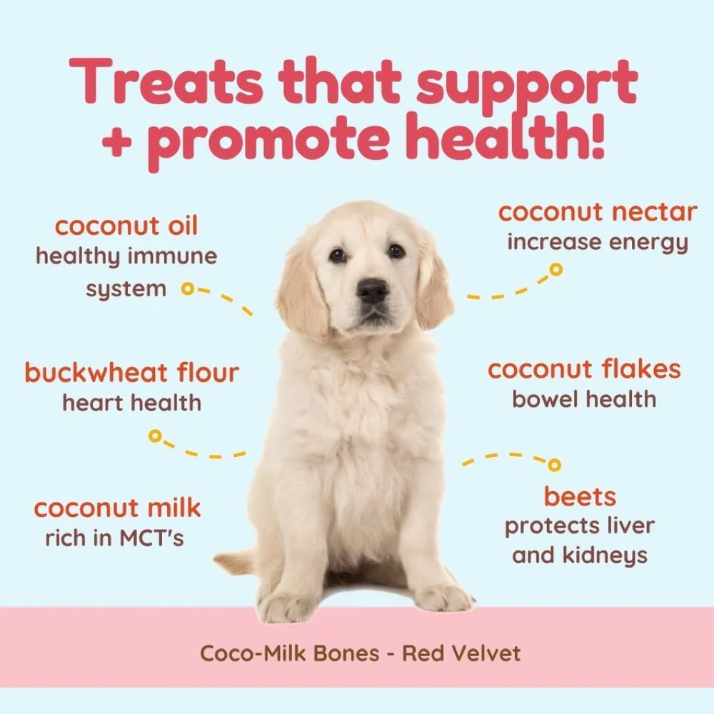 Coco-Milk Bones Red Velvet is made with creamy organic coconut milk.