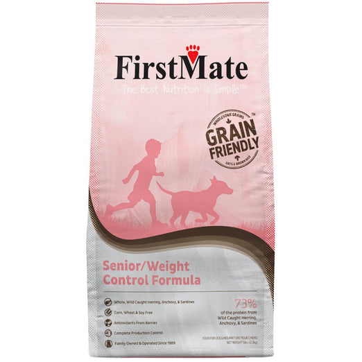 Support your senior or weight-conscious pup with FirstMate Grain-Friendly Senior/Weight Control Formula Dry Dog Food! Specially crafted for aging dogs and those needing a balanced diet, this hypoallergenic formula features a single-source, high-quality protein—wild caught pacific ocean fish—making it an excellent alternative for pups with chicken sensitivities.