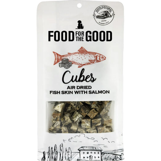 Food For The Good Freeze Dried Fish Skin With Salmon Cubes is an excellent source of protein, suitable for both dogs and cats.