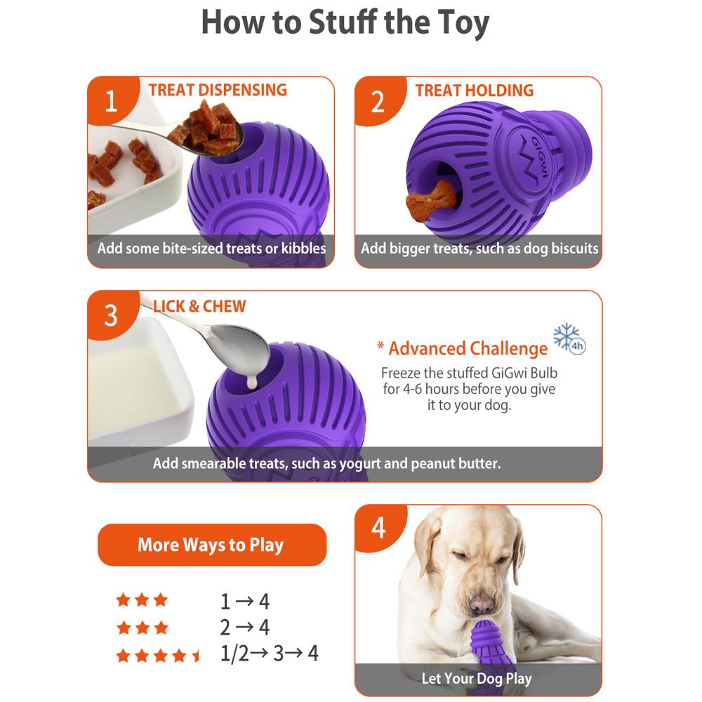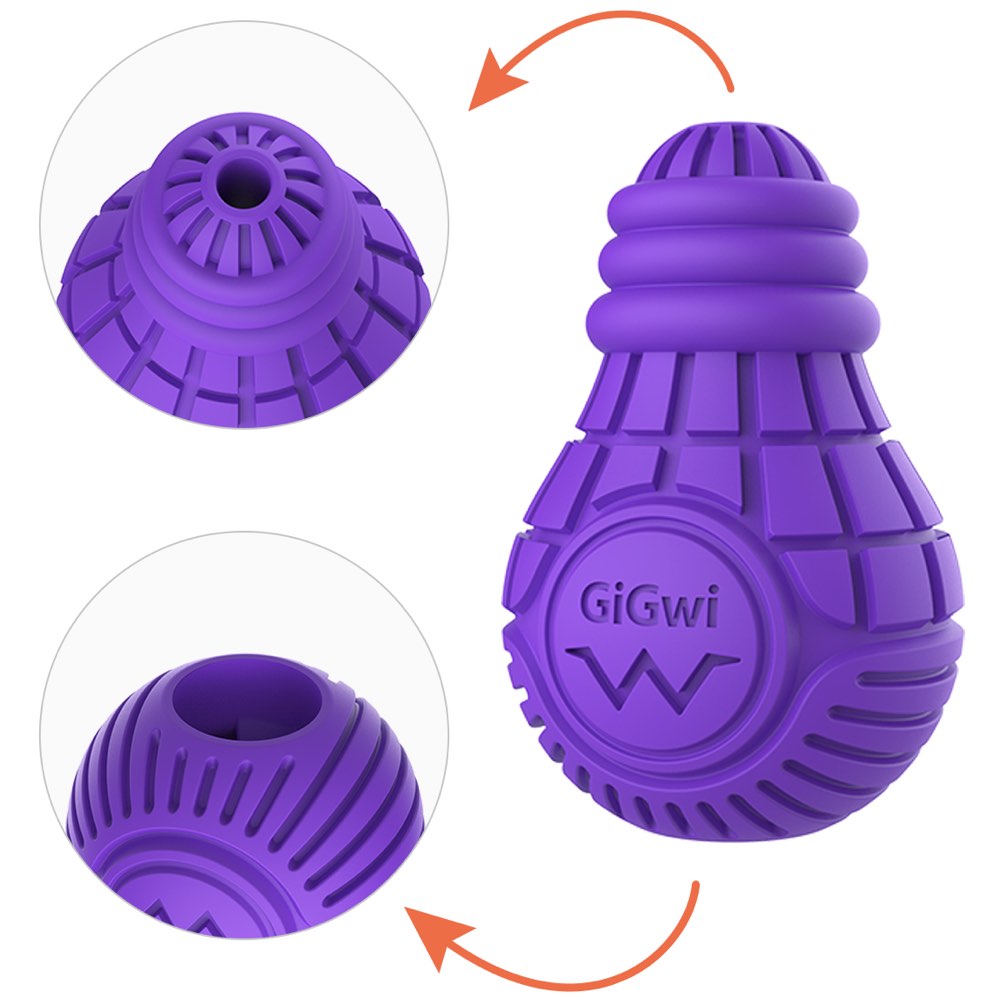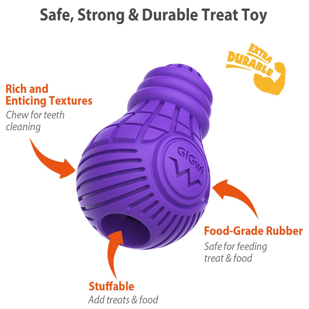 The GiGwi Bulb is a durable treat dispensing toy, built for heavy duty chewers. It is made from 100% Eco-friendly natural rubber that is safe and non-toxic.