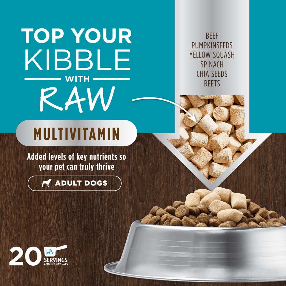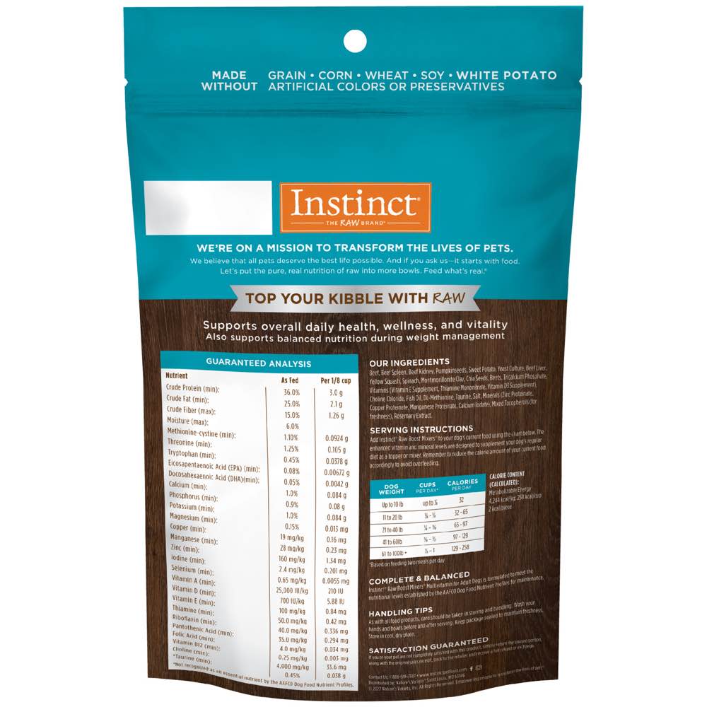 Instinct Raw Boost Mixers Multivitamin provides 27 guaranteed nutrients selected by our board-certified vet nutritionist and customized for dogs in their adult years.