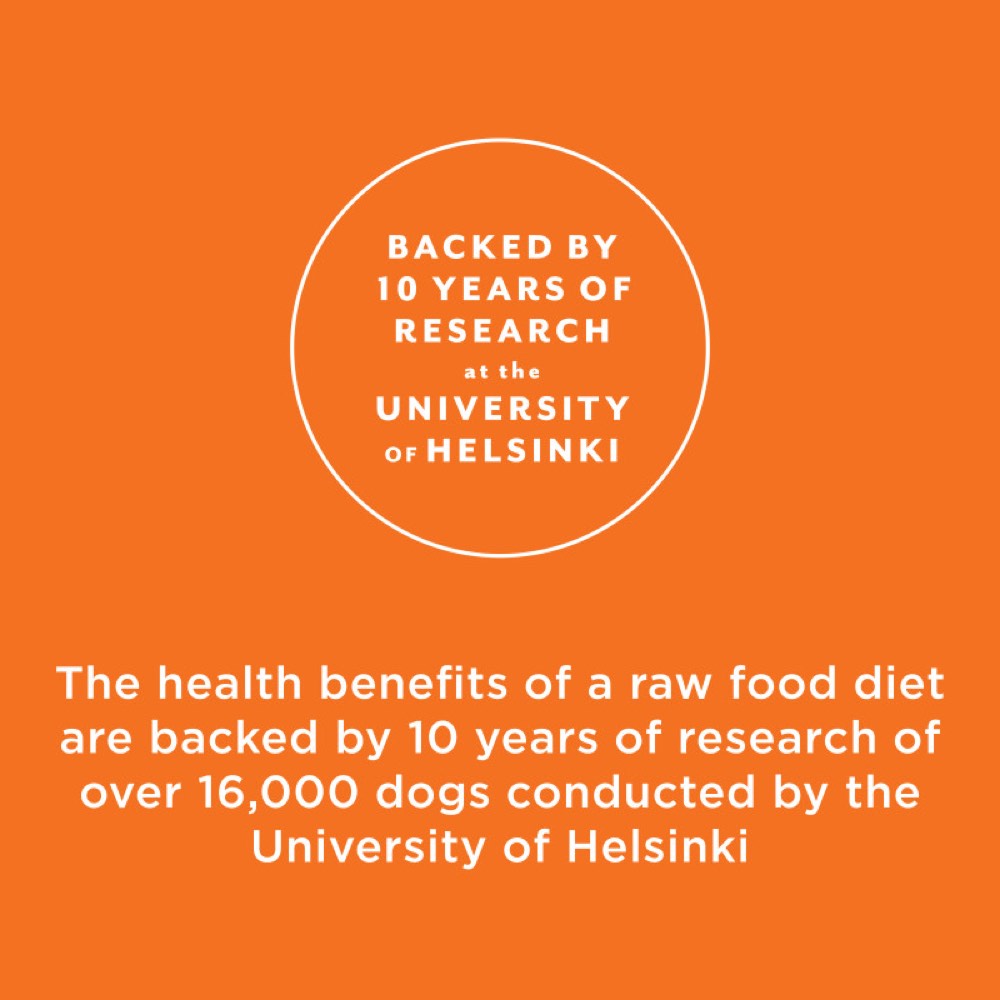 Raw is never cooked and is less processed than kibble, cans or refrigerated pet food - keeping the most nutrients intact
