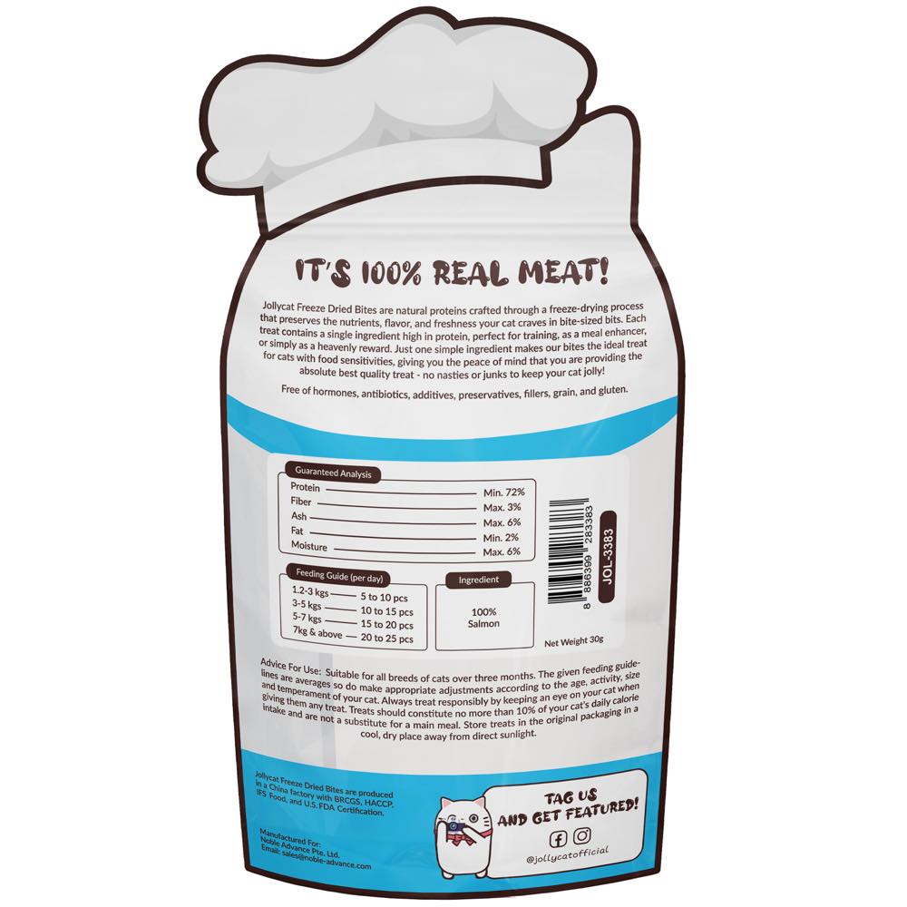Jollycat Freeze Dried Bites are natural proteins crafted through a freeze-drying process that preserves the nutrients, flavor, and freshness your cat craves in bite-sized bits.