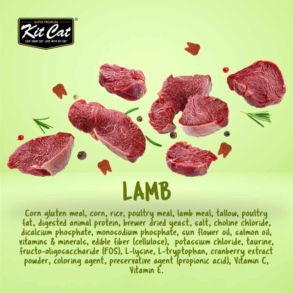 Corn Gluten Meal, Corn, Rice, Poultry Meal, Lamb Meal, Tallow, Poultry Fat, Digested Animal Protein, Brewer Dried Yeast, Salt, Choline Chloride, Dicalcium Phosphate, Monosodium Phosphate, Sun Flower Oil, Salmon Oil, Vitamins And Minerals, Edible Fiber (Cellulose), Potassium Chloride, Taurine, Fructo-Oligosaccharide (FOS), L-Lysine, L-Tryptophan, Cranberry Extract Powder, Coloring Agent (Red), Preservative Agent (Propionic Acid), Vitamin C, Vitamin E.