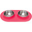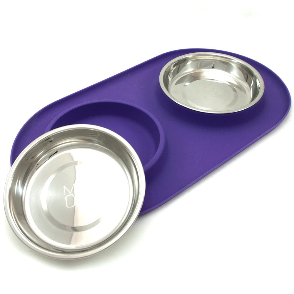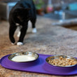 The non-slip silicone base prevents damage to your floors and holds 2 stainless steel bowls in place for your cat.