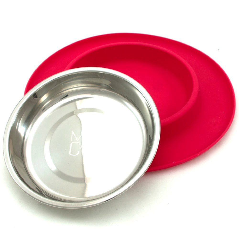 Care: Remove stainless steel bowl from silicone base and hand wash with warm water and mild soap or place in dishwasher. Hand wash recommended. Do not microwave.
