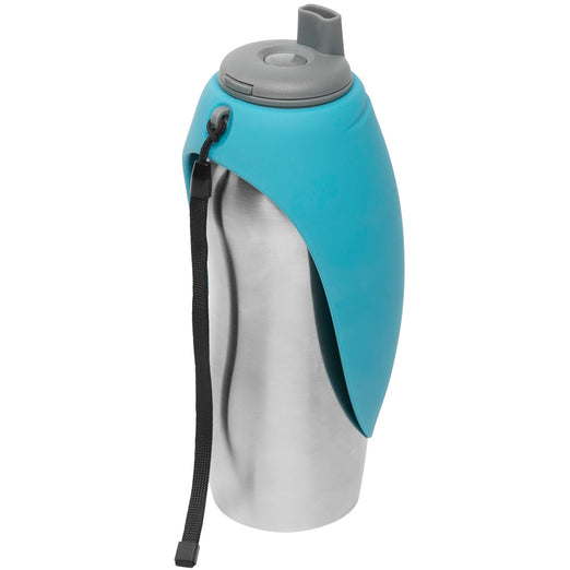 Messy Mutts Stainless Steel Travel Dog Water Bottle With Silicone Flip Up Bowl (Blue)