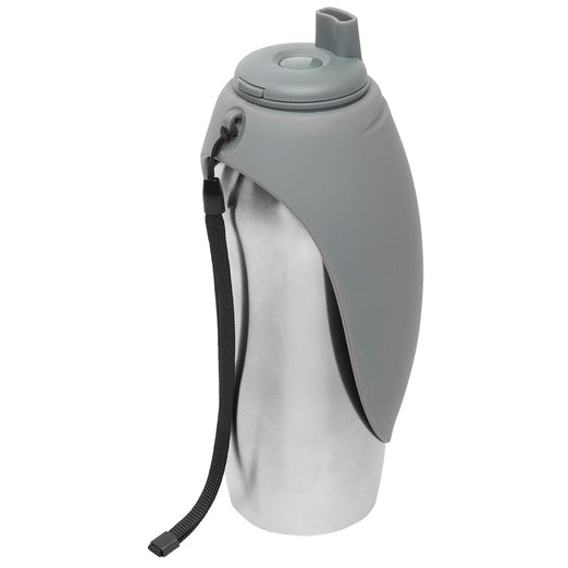 Messy Mutts Stainless Steel Travel Dog Water Bottle With Silicone Flip Up Bowl (Grey)