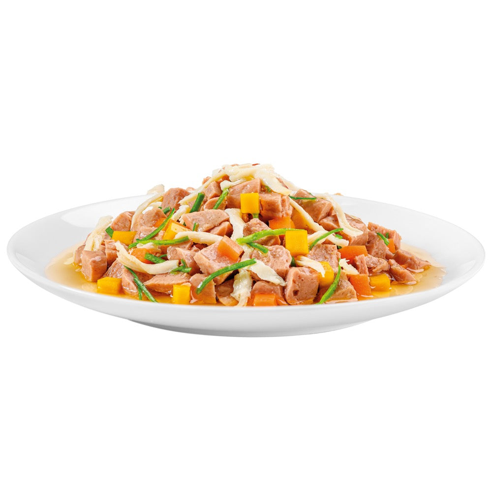 Chicken, Chicken Breast, Beef Liver, Potato Modified Starch, Amino Acid, Chicken Liver, Carrot, Pumpkin, Spinach, Sunflower Oil, Minerals, Thickening Agents, Vitamins, Prebiotic, Caramel.