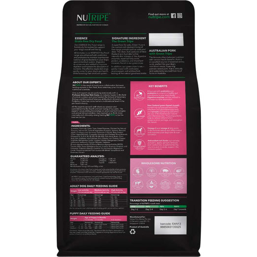 The main ingredients in this dog food are Australian Pork with Green Tripe, Sweet Potatoes, Chicken Fat, Natural Flavours, and Salmon Oil.