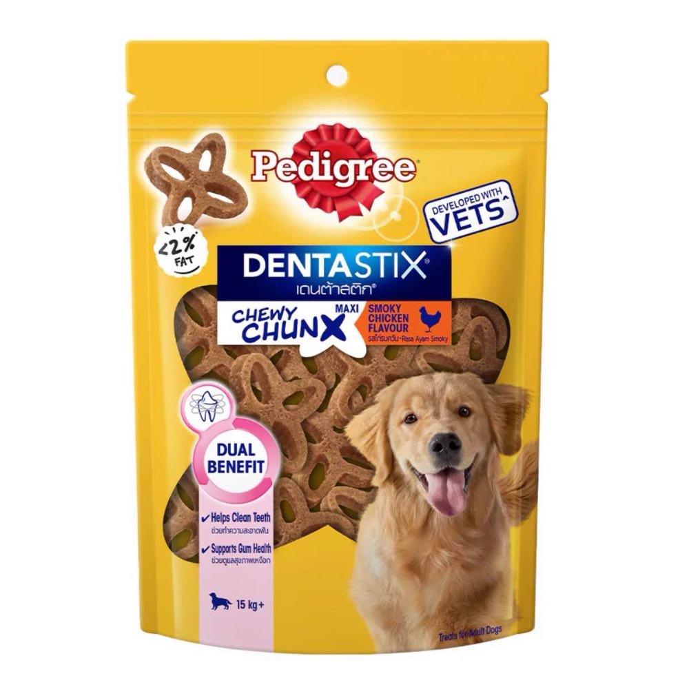Give your dog a delicious and healthy dental treat with Pedigree® Dentastix™ Chewy Chunx™ Smoky Chicken. These chewy treats help support dental health while delivering a rich, smoky chicken flavour that dogs love.