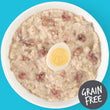 Chicken 52% (gizzards 5%, livers 5%, hearts 5%), chicken broth 35%, quail egg 6%, refined sunflower oil, tapioca starch, egg powder, minerals.