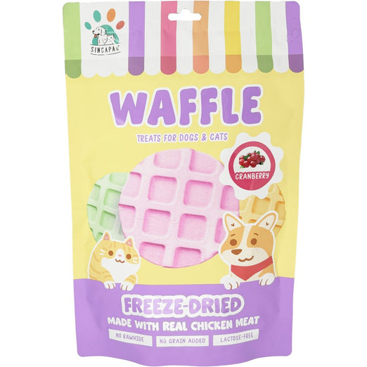 SINGAPAW WAFFLE freeze-dried treats for dogs and cats are made with real chicken meat and limited ingredients.