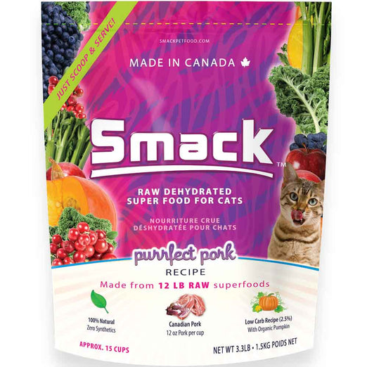 Smack Purrfect Pork Raw Dehydrated Cat Food uses only the highest quality ingredients. We steer clear of the bad stuff. Every recipe is carefully composed to support your dog with:
