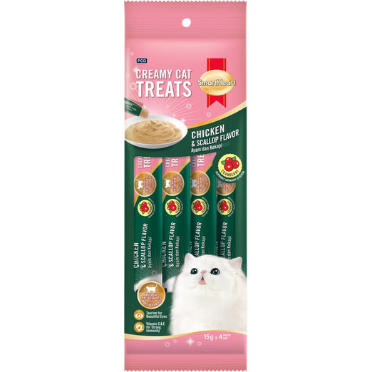 The main ingredients in this cat treat are chicken, chicken liver, modified tapioca starch, flavoring agent, gelling agent, scallop, cranberry extract, and vitamins (C&E).