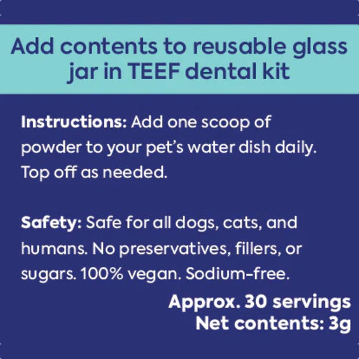 Teef pioneers in dental health with their Probiotic Water Additive, designed to promote strong teeth and fresh breath for dogs. Their patented formula stands out by targeting the root cause of dental decay and bad breath, offering a unique approach to pet oral care that's both effective and easy to use.