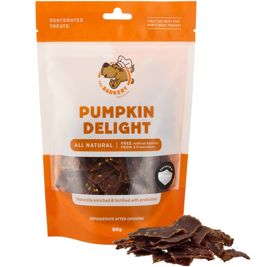 The main ingredients in this dog treat are pumpkin, carrots, celery, sesame seeds, and flax seeds.