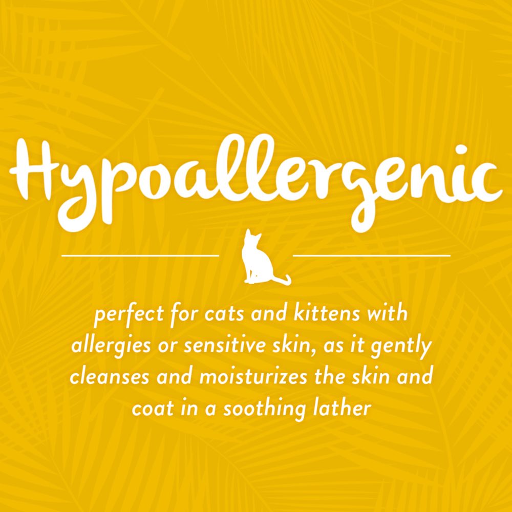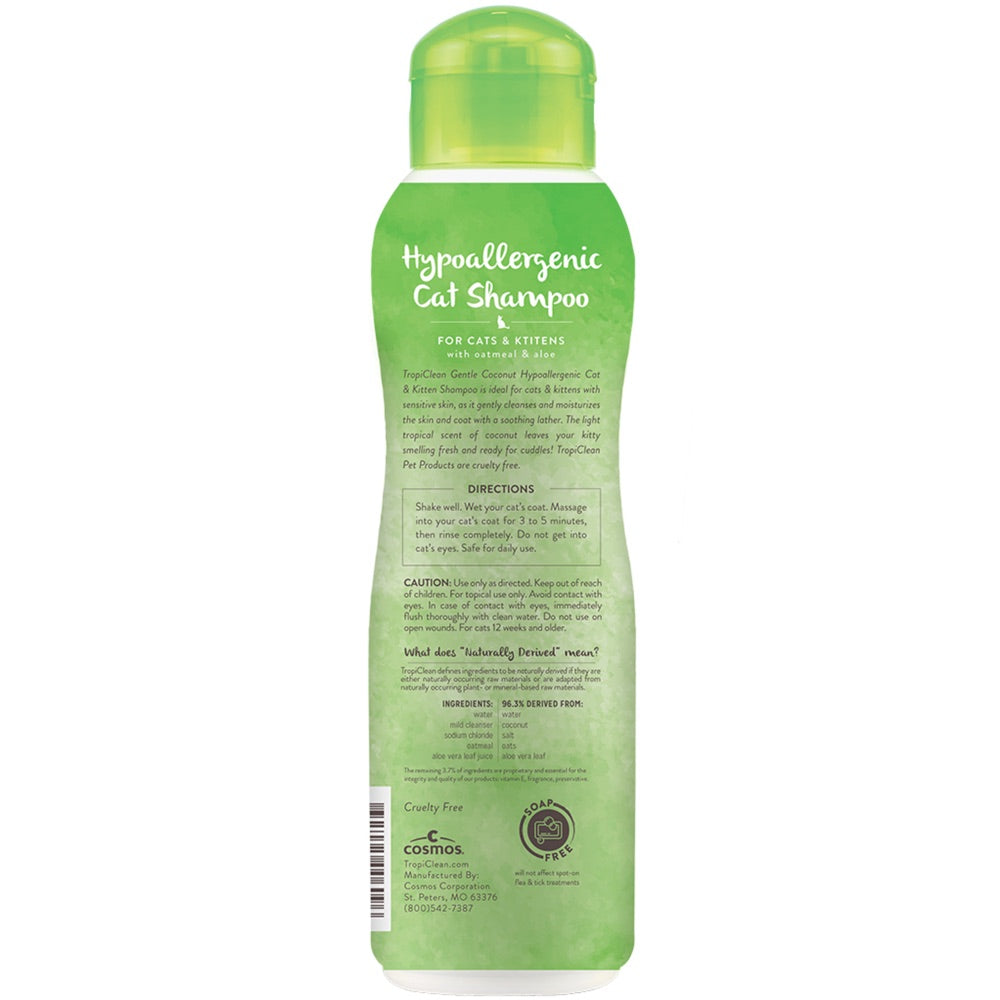 TropiClean Gentle Coconut Hypoallergenic Cat & Kitten Shampoo is perfect for cats with sensitive skin, as it gently cleanses and moisturizes the skin and coat with a soothing lather.