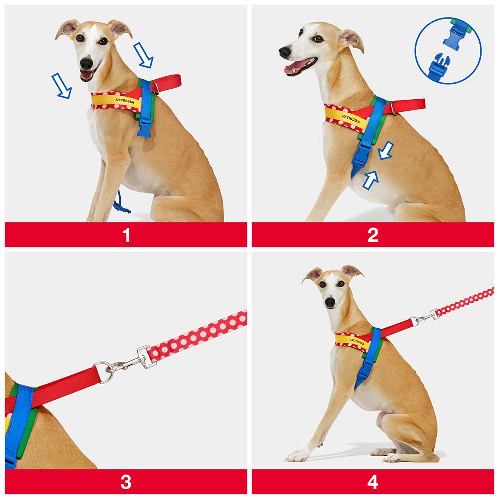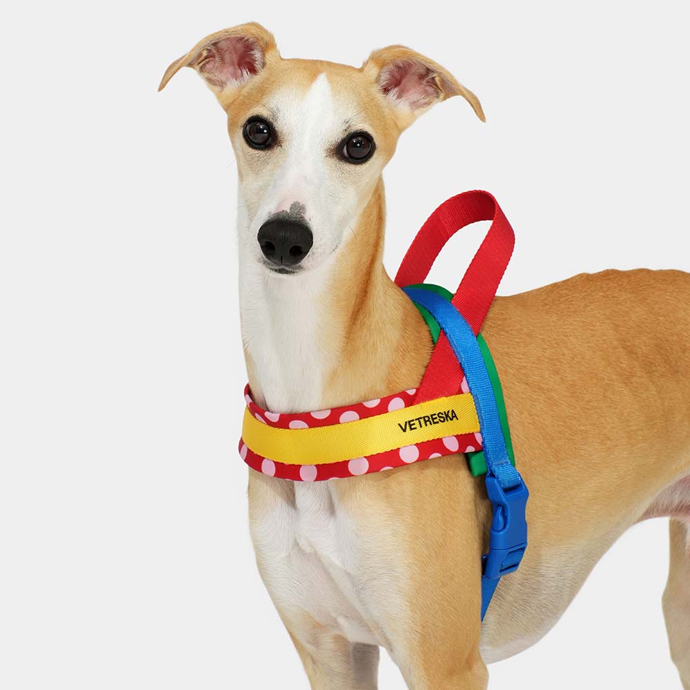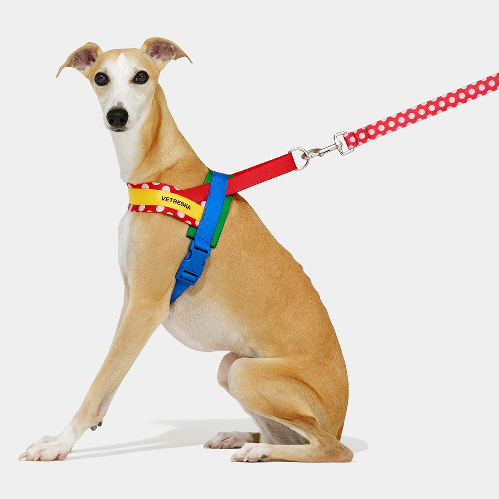 Introducing the VETRESKA Chroma Pet Harness & Leash Set, a vibrant collision of bold hues that sets the stage for your pet's fashion-forward adventures!