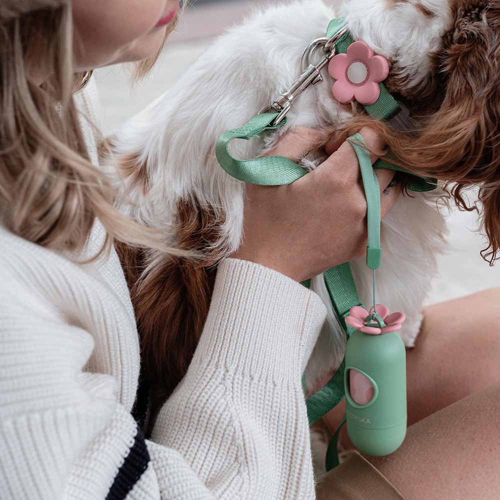VETRESKA Flora Dog Poop Bag Dispenser Set features an adorable flower-themed poop bag dispenser with 7 rolls of Vetereska’s best-selling Flora Scented Poop Bags to get you started!