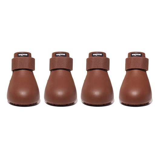 WagWellies®, the original wagwear “Wellington” boots. These 100% rubber, slip-on puddle jumpers are built to last. Our patented design makes them easy to slide off and on, while also creating a secure fit that will stay put even while on the run. Sleek, sturdy, and, most importantly, comfortable, making for the perfect paw protection. Sold as a set of 4.