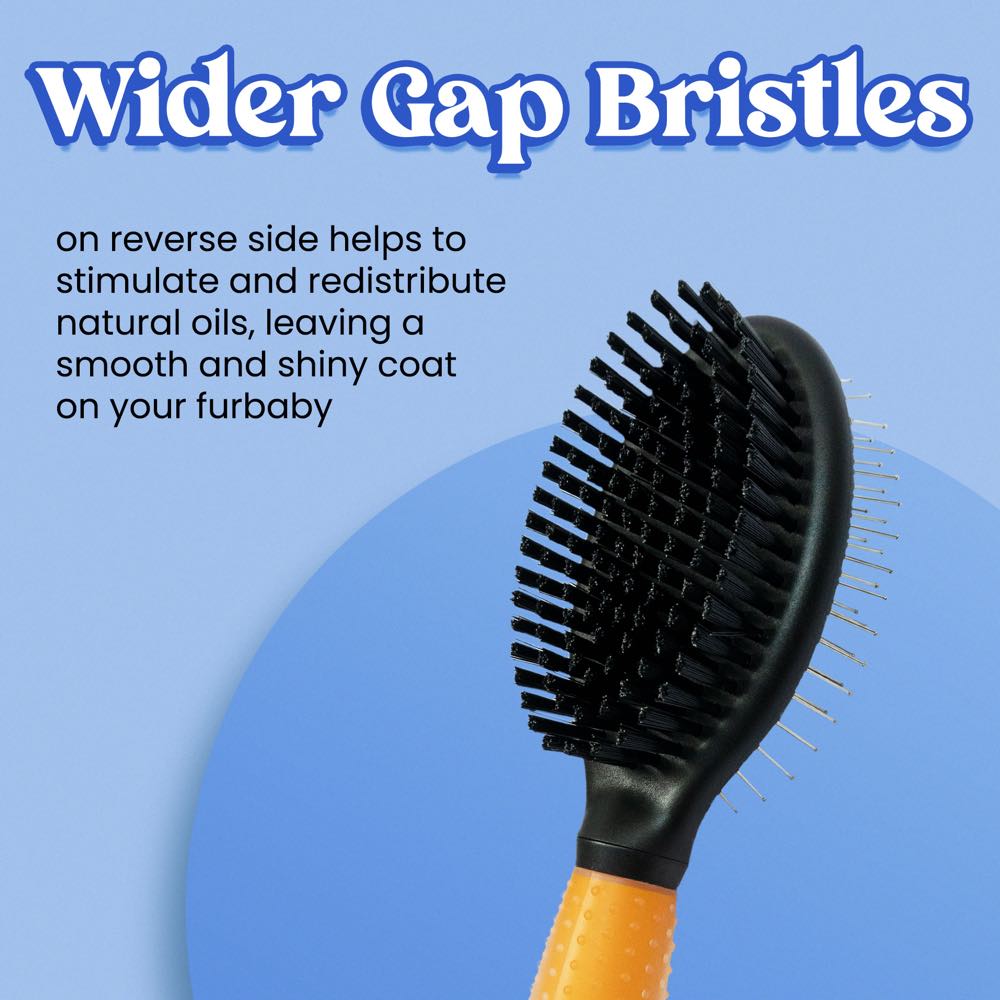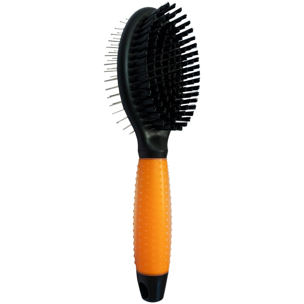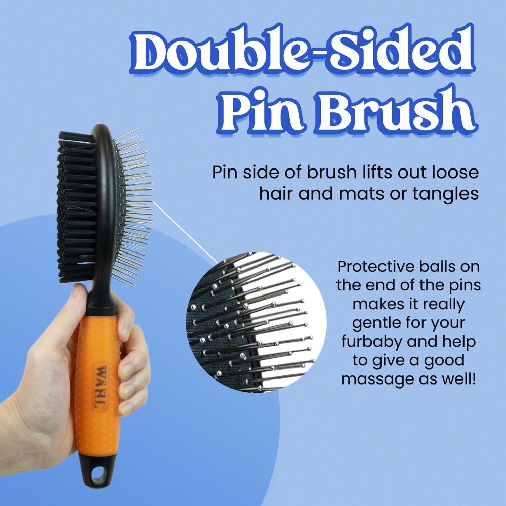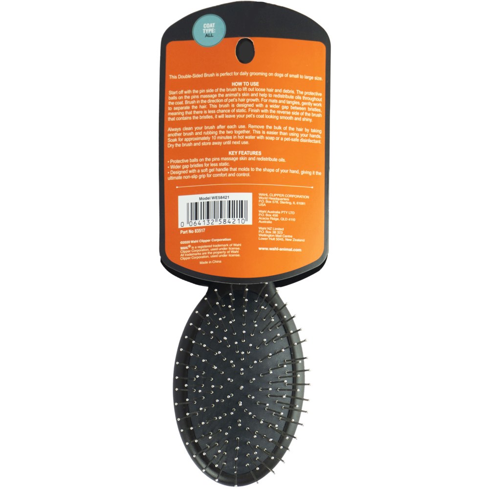 Wahl Large Double-Sided Pin Dog Brush has a soft, ergonomic non-slip gel handle that moulds to the shape of your hand for additional comfort and control, making long grooming sessions a breeze!