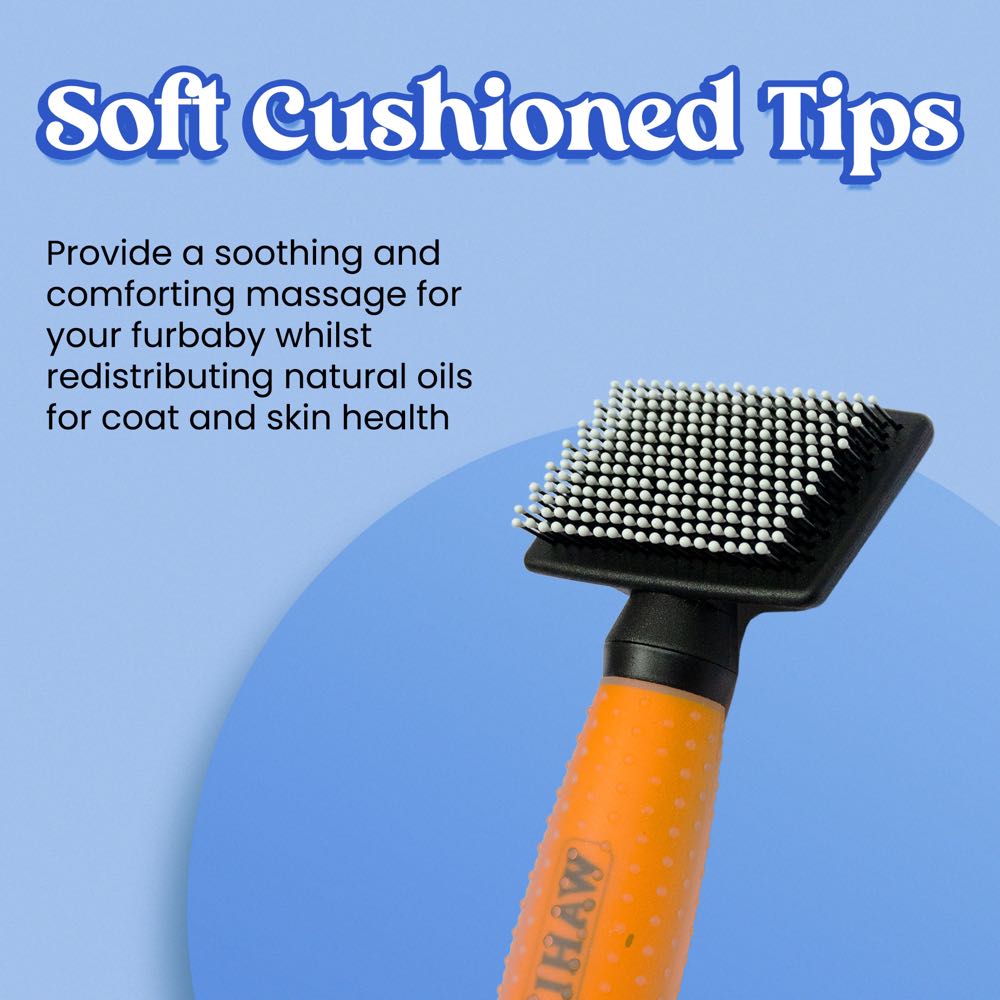 A great way to soothe and unwind with your dog after a long day, Wahl Small Nylon Slicker Dog Brush’s cushioned tips also helps gently massage your dog’s skin as you brush.
