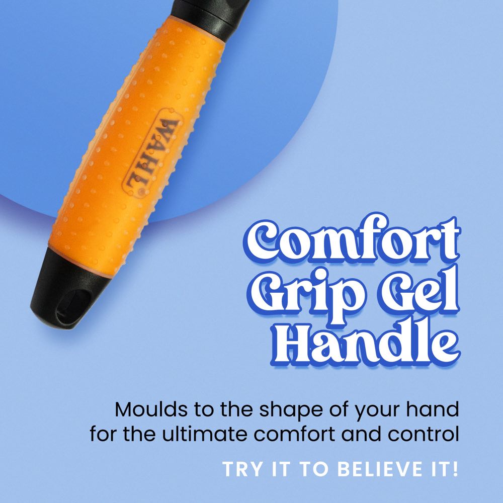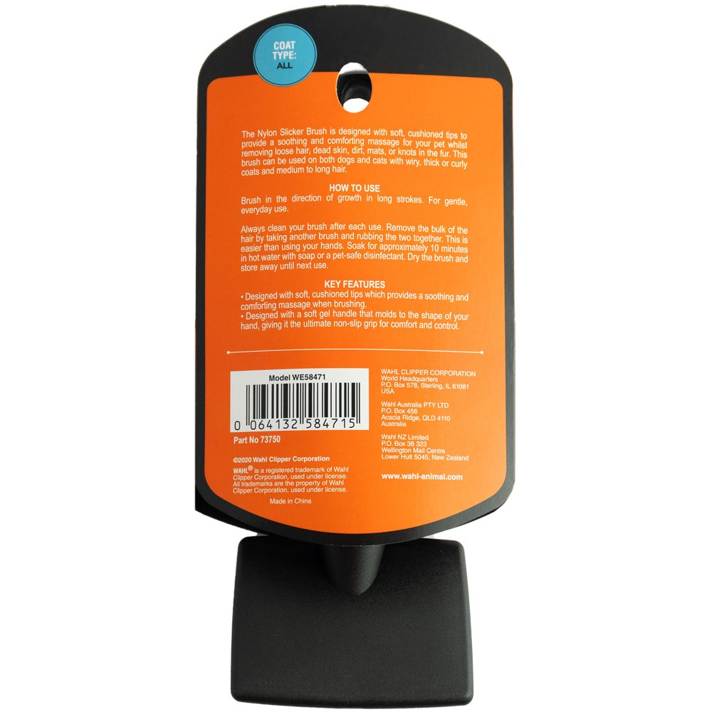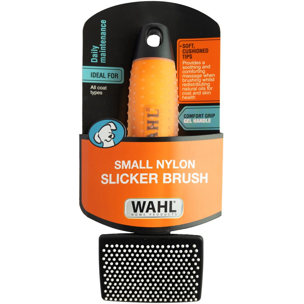 Wahl Small Nylon Slicker Dog Brush is made with a soft, ergonomic non-slip gel handle that contours to the shape of your hand for additional comfort and control, making long grooming sessions a breeze!