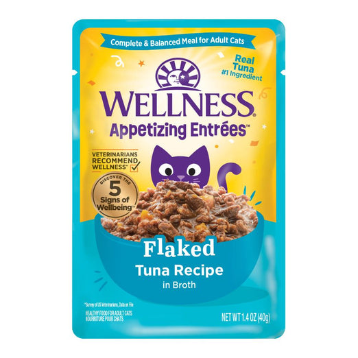 Wellness® Appetizing Entrées™ Flaked Tuna Recipe features mouthwatering meals cats crave. Each delicious, protein-rich recipe is formulated for adult cats, features real protein as the #1 ingredient, and is crafted with high-quality, natural ingredients.