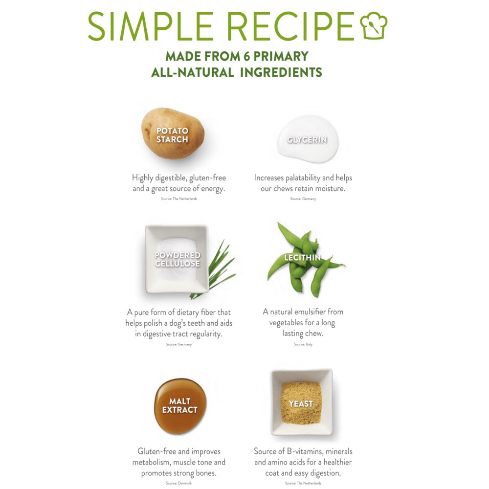 • Edible, vegetarian, gluten-free dental treat is a healthy option for dogs with gluten intolerance or food sensitivities.