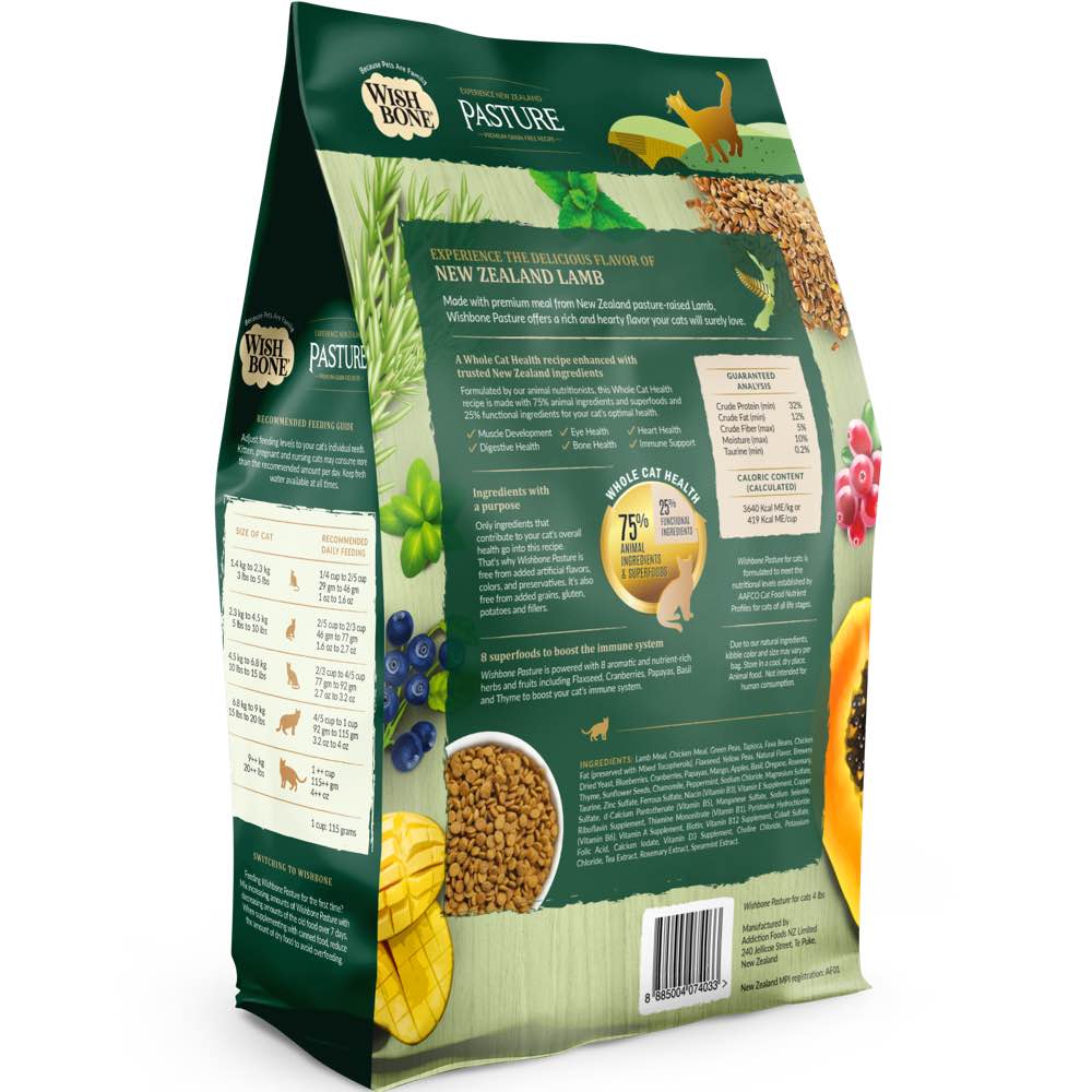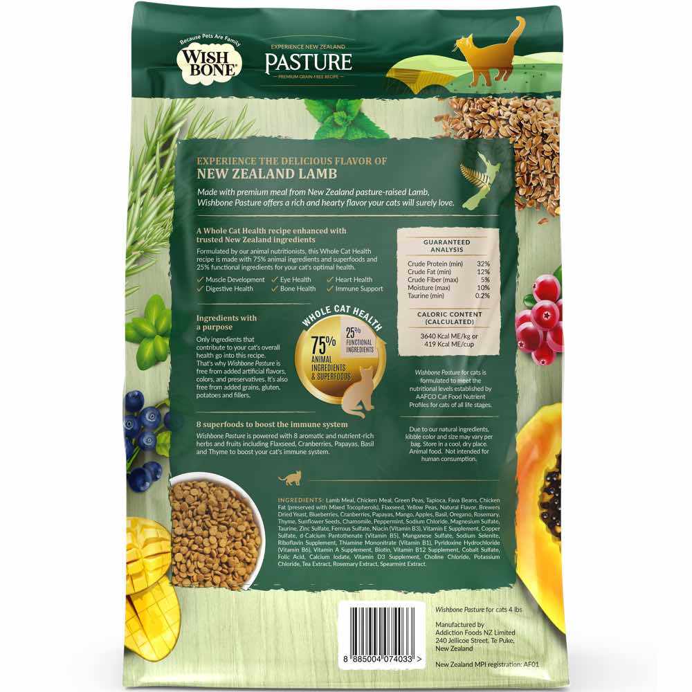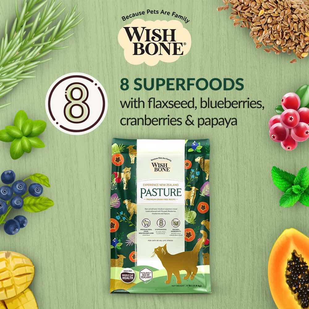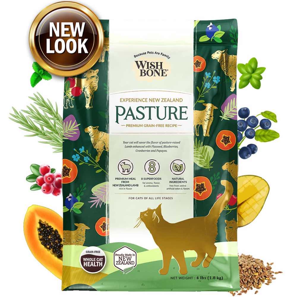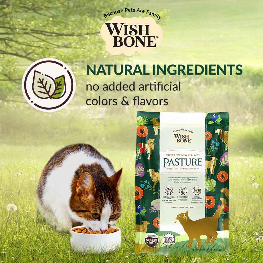 Only ingredients that contribute to your cat's overall health are selected. That's why Wishbone Pasture is free from added artificial flavors, colors, and preservatives, and contains no grains, gluten, potatoes and fillers.