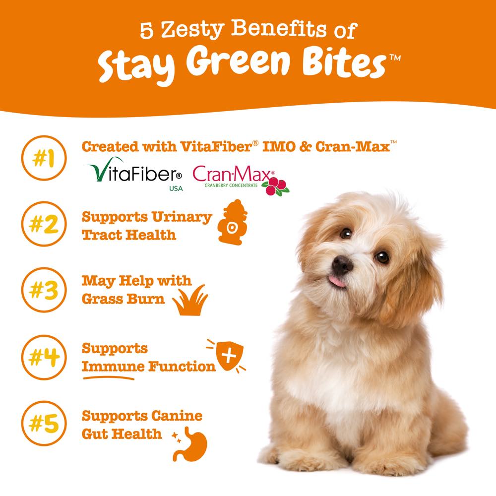 If your pup creates burn spots on your grass when nature calls, our Stay Green Bites may be able to help!