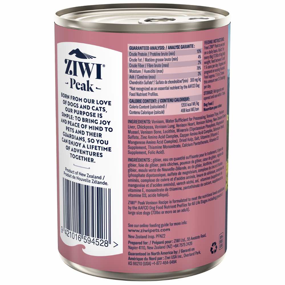 The main ingredients in this dog food are premium New Zealand venison meat, organs, bone, New Zealand green-lipped mussels, essential vitamins and minerals, natural kelp, parsley, chicory inulin, and lecithin.